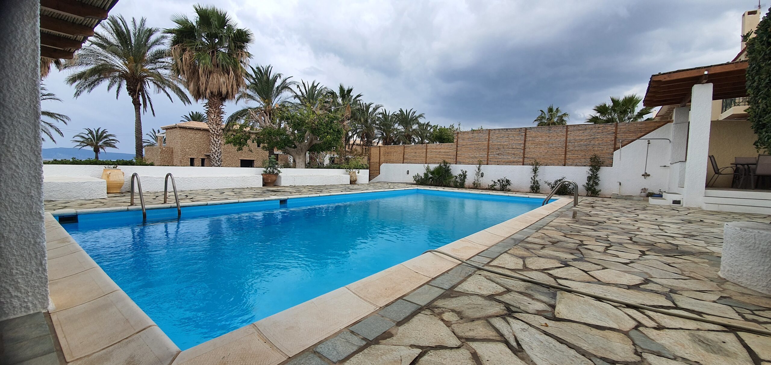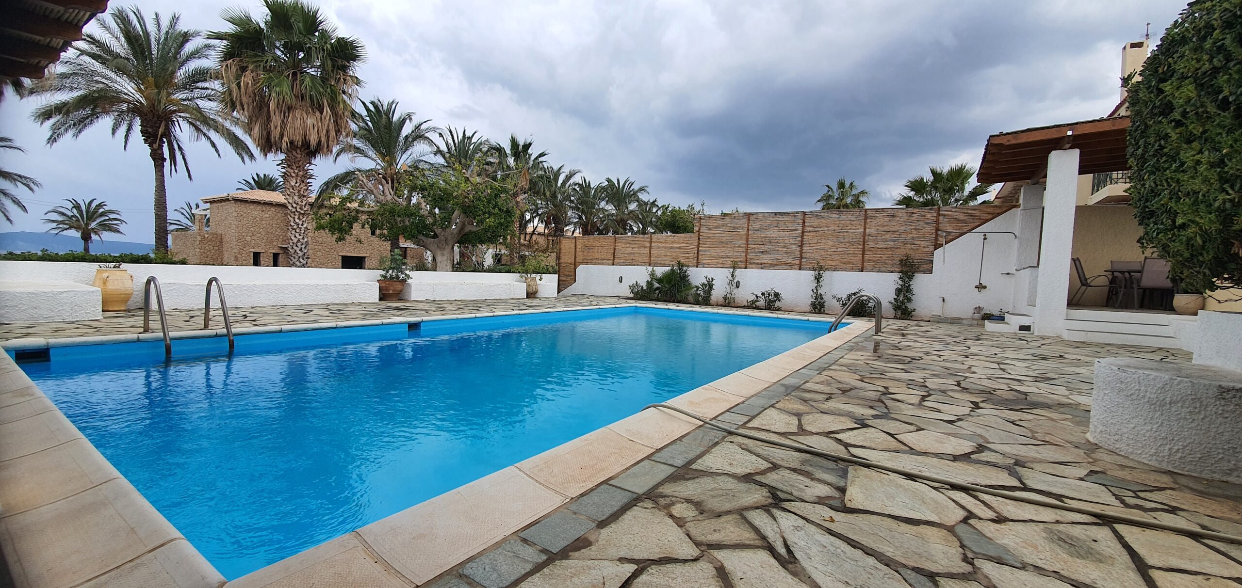 -2 storage rooms — one in the basement housing the boiler room, pool machinery, and water tanks, and another inside the house with laundry facilities